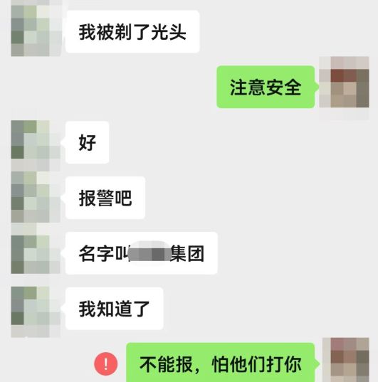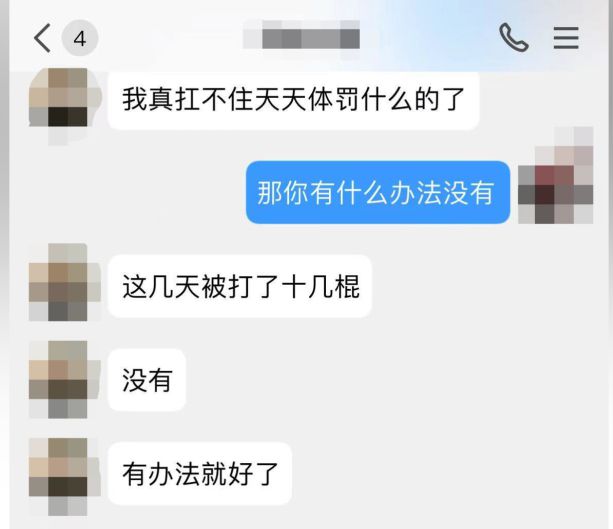 父母们通过聊天软件,想获取一些孩子们在诈骗集团的“工作”与“生活”情况,换来的却是孩子们被不断体罚的遭遇。除了挨打外,还会让孩子们站在40多度的室外暴晒、罚他们吃干辣椒等等。
