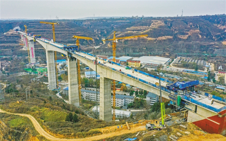 看“新进展”,2023年,延榆高铁项目正式开工、西延高铁全线最长的浅埋全黄土隧道——洛川隧道贯通、西康高铁控制性工程取得重大突破……“米”字形高铁网主骨架成型;