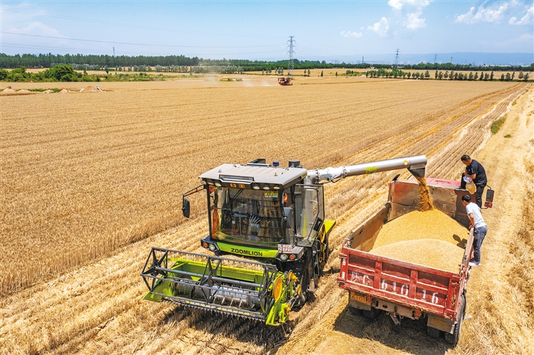 6月13日,宝鸡市陈仓区慕仪街道第三村村民在收获小麦(资料照片)。