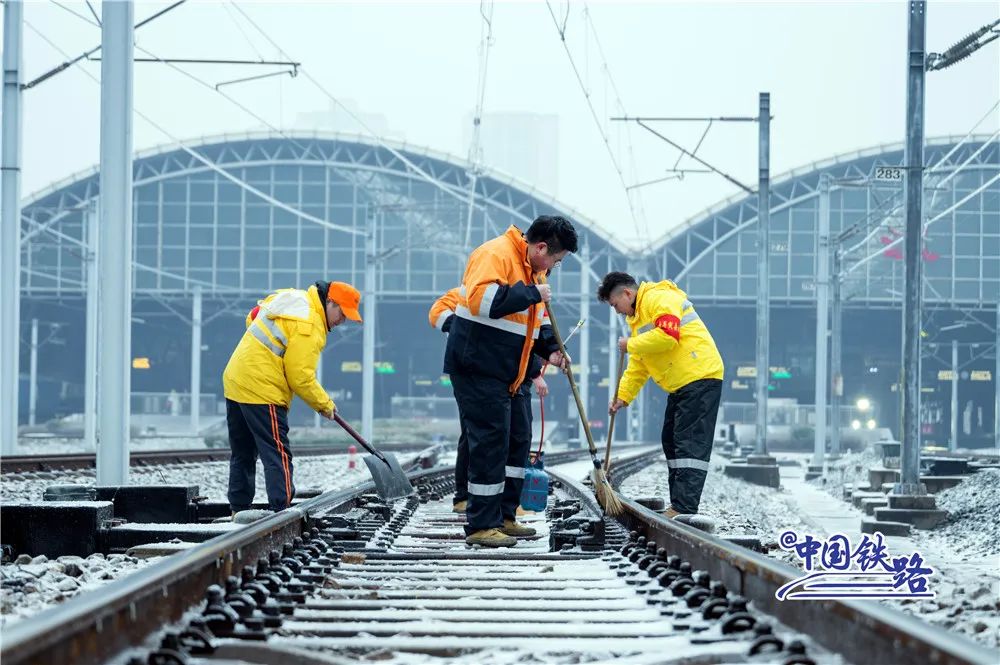 国铁集团坚持人民至上、生命至上,采取有力有效措施,积极应对低温雨雪冰冻天气,加大保安全、保畅通、保民生工作力度。相关铁路局集团公司根据天气变化情况,动态调整旅客列车开行方案,保障旅客出行安全。武汉、广州局集团公司组织车站、通信信号、线路等单位成立扫雪应急队伍,配备打冰扫雪工具,加强对隧道口、跨线桥、重点线路等关键区段巡查力度;组织人员对机车顶部、撒砂装置、制动管路等进行重点检查,及时清扫转向架、踏面等部位积冰积雪,确保设备设施运行良好。济南局集团公司兖州工务段组建了18支除雪小分队,根据降雪情况加密设备巡查。青岛工务段提前储备吹雪机21台、防冻液3吨以及各类扫雪除冰工具,及时做好扫雪除冰工作。济南通信段通过智能监测系统,对铁路沿线雨、雪数据实时监测,为行车组织提供参考。青岛北动车所组织500余名动车组机械师对47列66组动车组进行全面整备,确保状态良好。郑州局集团公司加强对机车、车辆的检修维护力度,加密车灯、受电弓等关键设备和空调、茶炉、照明等服务设施检查频次,提升入库检修质量,确保列车安全上线运行;组织2列打冰车,对郑太高铁线路接触网进行除冰作业,自降雪以来已累计开行打冰车148列,对京广高铁、济郑高铁等6条线路接触网进行除冰作业。南昌局集团公司针对赣北地区降雪天气,组织了近7000人的应急队伍,备足铁锹、融雪剂等扫雪除冰工具物资,安排19组除冰机车、55台应急内燃机车待命,随时上线融冰除雪。太原、济南、成都局集团公司加强电煤、工业用盐等重点物资运输组织,为人民群众温暖过冬、欢度春节提供运输支撑。