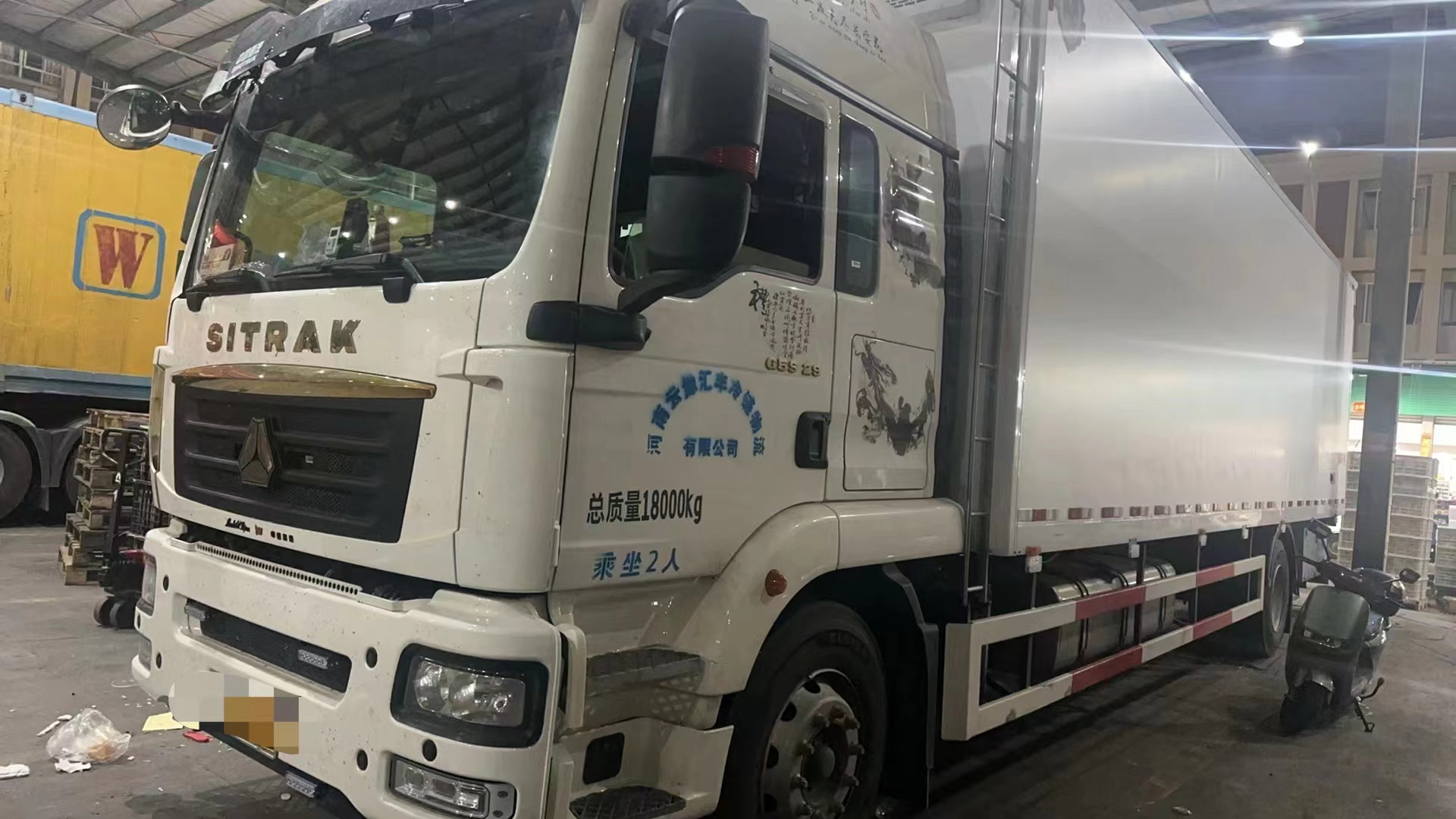 夫妻俩开的货车整长12.5米,差不多能正好挡住道路。