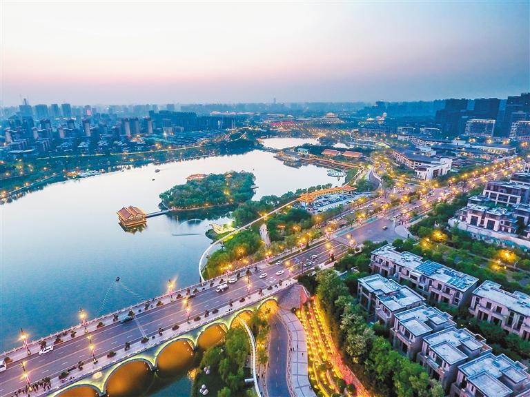 现在的西安夜景在灯光的点缀下美不胜收(资料图片)