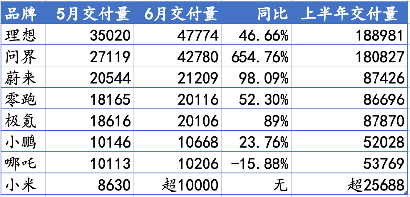 多家造车新势力6月交付量创下新高。