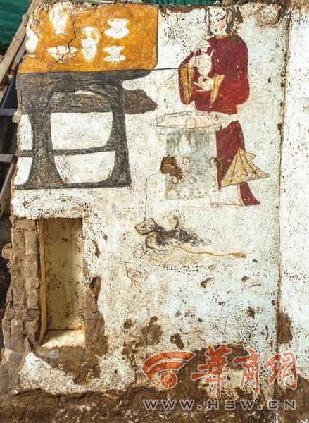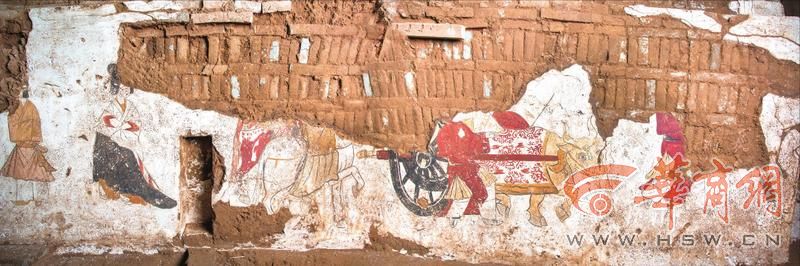 该墓葬上部整体被现代垃圾坑打破,墓室西壁、北壁大部分区域已不存。虽破坏严重,没有出土器物,但其规模较大,甬道及墓室部分壁画保存较好,内容丰富,时代特征明显,为近年来所罕见。