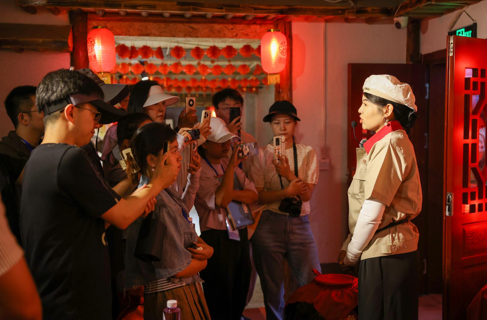 8月12日,采访团走进吴忠市利通区强家老醋文化养生园,探访中华传统酿醋技艺百年传承的奥秘。强家老醋酿造技艺,是国家级非物质文化遗产,距今已有百年历史。强家老醋采用独有的家传发酵工艺,以上好的蚕豆、黑豆、黄豆、小麦等为原材料,经过发酵、淋醋、陈酿、窖藏等工艺酿制而成,味道香醇、工艺独到。强家老醋文化养生园,也成为集生产、研发、体验、销售、研学游、观光游为一体的旅游园区。目前,已建成传统老醋坊、醋文化长廊、醋疗养生体验馆、老醋私人订制、产品展销厅、老醋美食宴等六大板块。游客可以在这里充分感受非遗酿造技艺的神奇,体验传统文化的魅力。