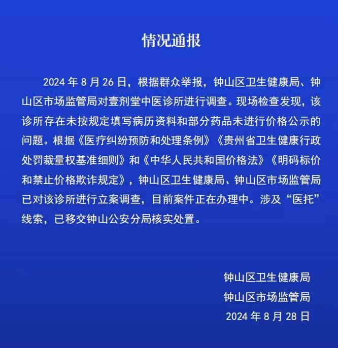 针对网友黄先生反映的“医托”问题,六盘水市钟山区相关部门发布情况通报