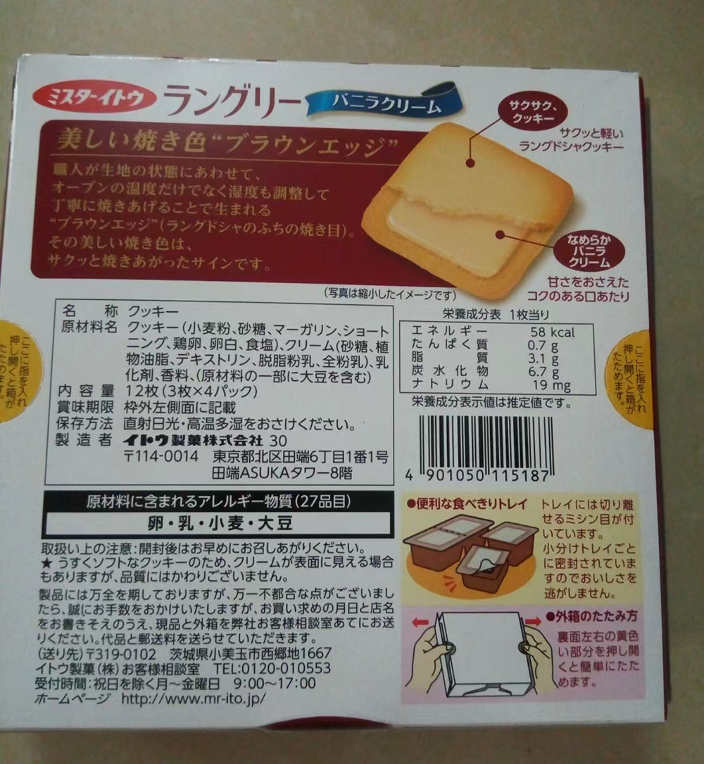 他发来当时所举报的一家商家所售的曲奇产品图片,日文标签显示生产工厂为茨城县小美玉市西乡地1667。而根据原国家质量监督检验检疫总局相关规定,禁止从茨城县等12个受核辐射影响的都县进口食品。