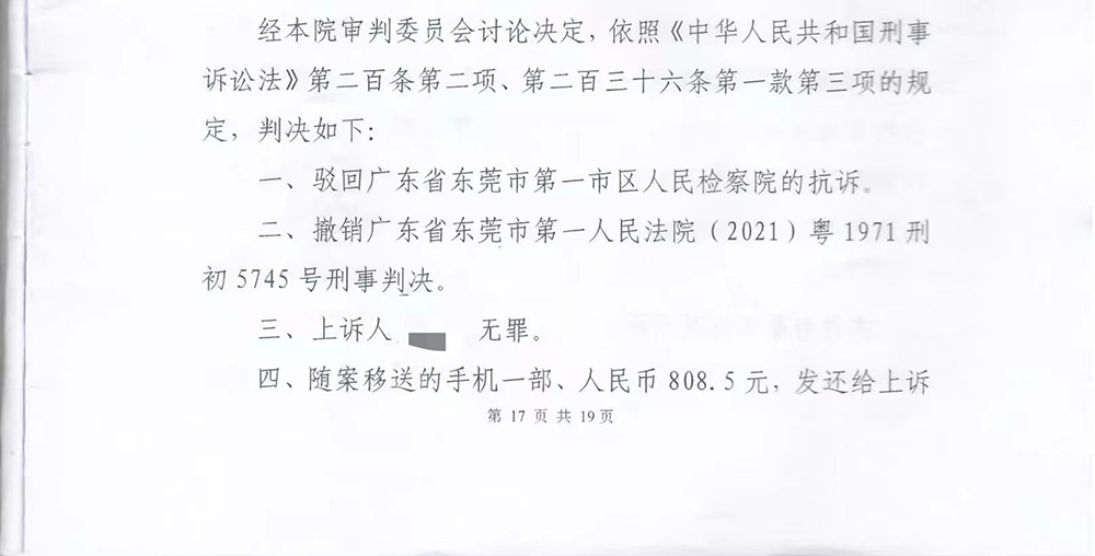 东莞中院二审判决书