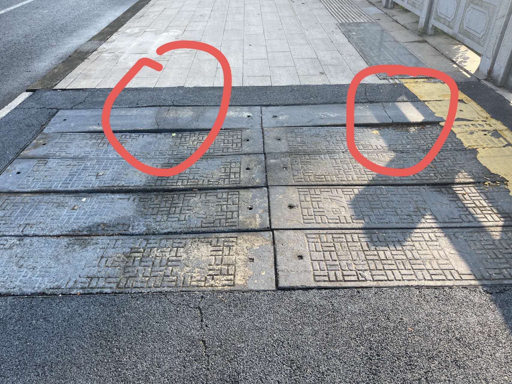 对该说法,高女士表示不能接受。她告诉澎湃新闻,事发后补上的两块井盖,如今过去不到一个月已再次出现凹陷,而桥另一侧的窨井盖也凹陷严重,甚至有两块有明显断裂的痕迹,“希望城建集团尽快回复窨井如何处理”。