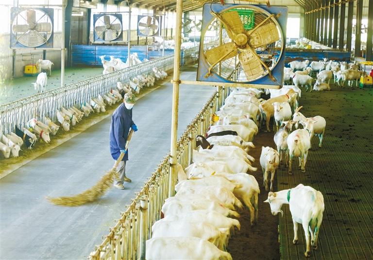 陕西和氏乳业集团有限公司标准化养殖基地的工作人员在清扫羊舍(资料照片)。 群众新闻网记者 张宁宁摄