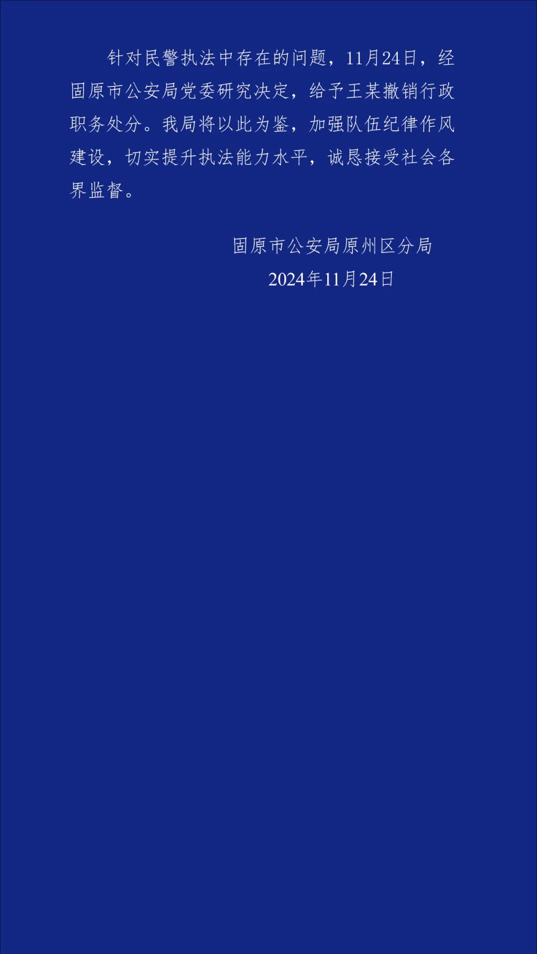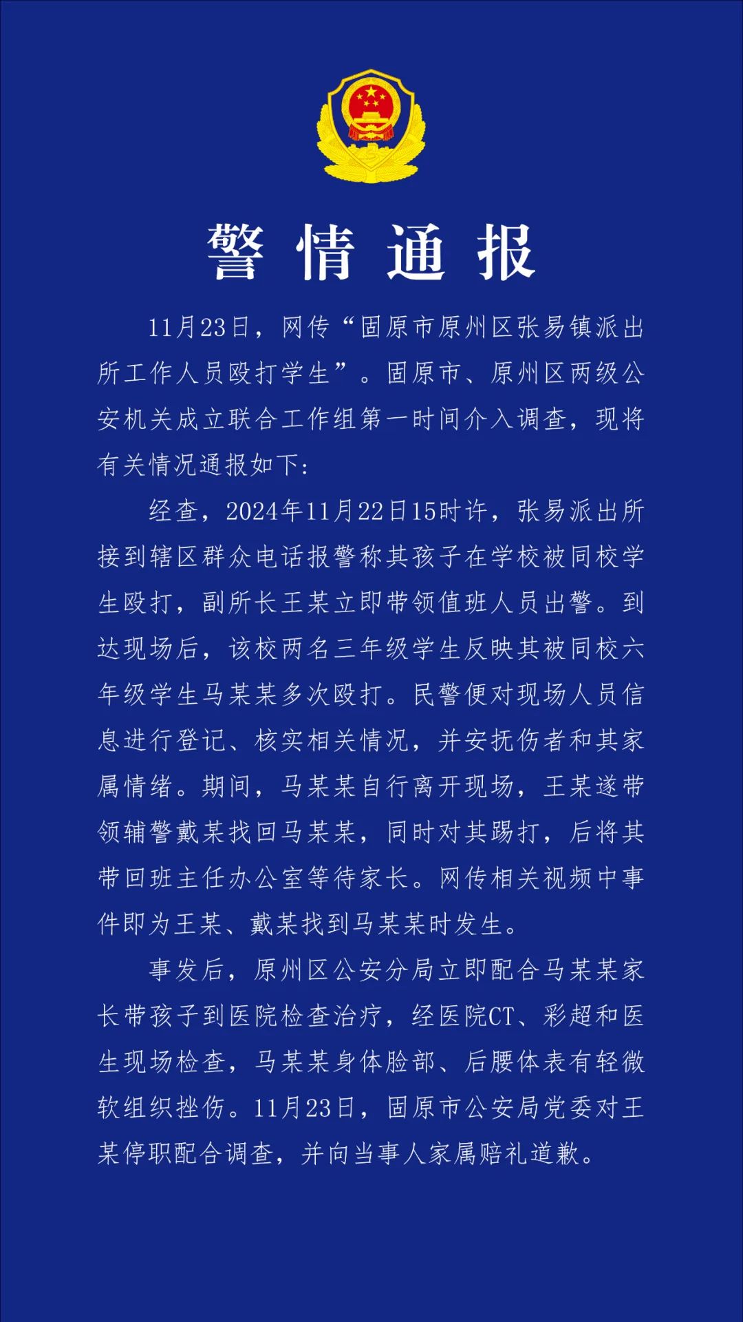 宁夏固原警方通报派出所人员踢打小学生:副所长被撤职