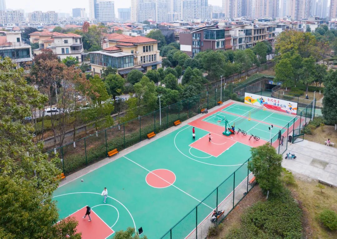 月亮岛街道金瑞社区长高圆梦佳苑小区内新建的标准篮球场及羽毛球场。长沙晚报全媒体记者 邹麟 摄