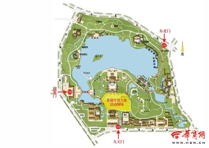 市民游客可于2025年1月7日14:00以后入园,携带本人有效身份证,经工作人员核实身份信息后,凭预约成功二维码,由御苑门、九天门(推荐)、东北门,入口刷码入园,前往年货大集活动现场,免费参与新春文化活动(请您务必于指定时间到达活动现场,预约码仅限活动当日有效)。