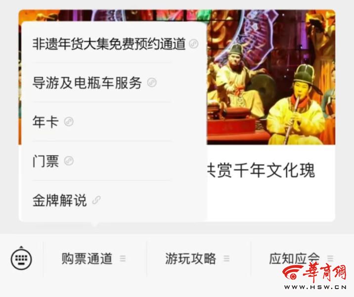 免费预约流程:只需于免费预约时间内①关注大唐芙蓉园公众号②点击非遗年货大集免费预约通道③预约点击“0元购买”,填写相关信息后,免费预约成功。④免费入园:预约成功后将会收到免费入园二维码。