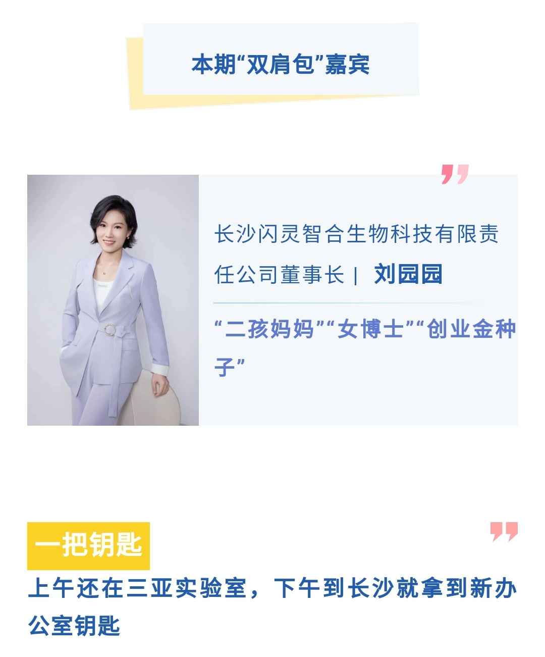 “这把钥匙打开了我梦想的大门。”刘园园郑重地从她的双肩包里拿出一把钥匙,这是她新办公室的钥匙。3月25日,刘园园从三亚实验室飞回长沙,签下湖南湘江新区大学生创新创业园入驻协议,拿到这把钥匙。由此,长沙闪灵智合生物科技有限责任公司(以下简称“闪灵智合”)正式落地,刘园园的创业之路也就此启航。