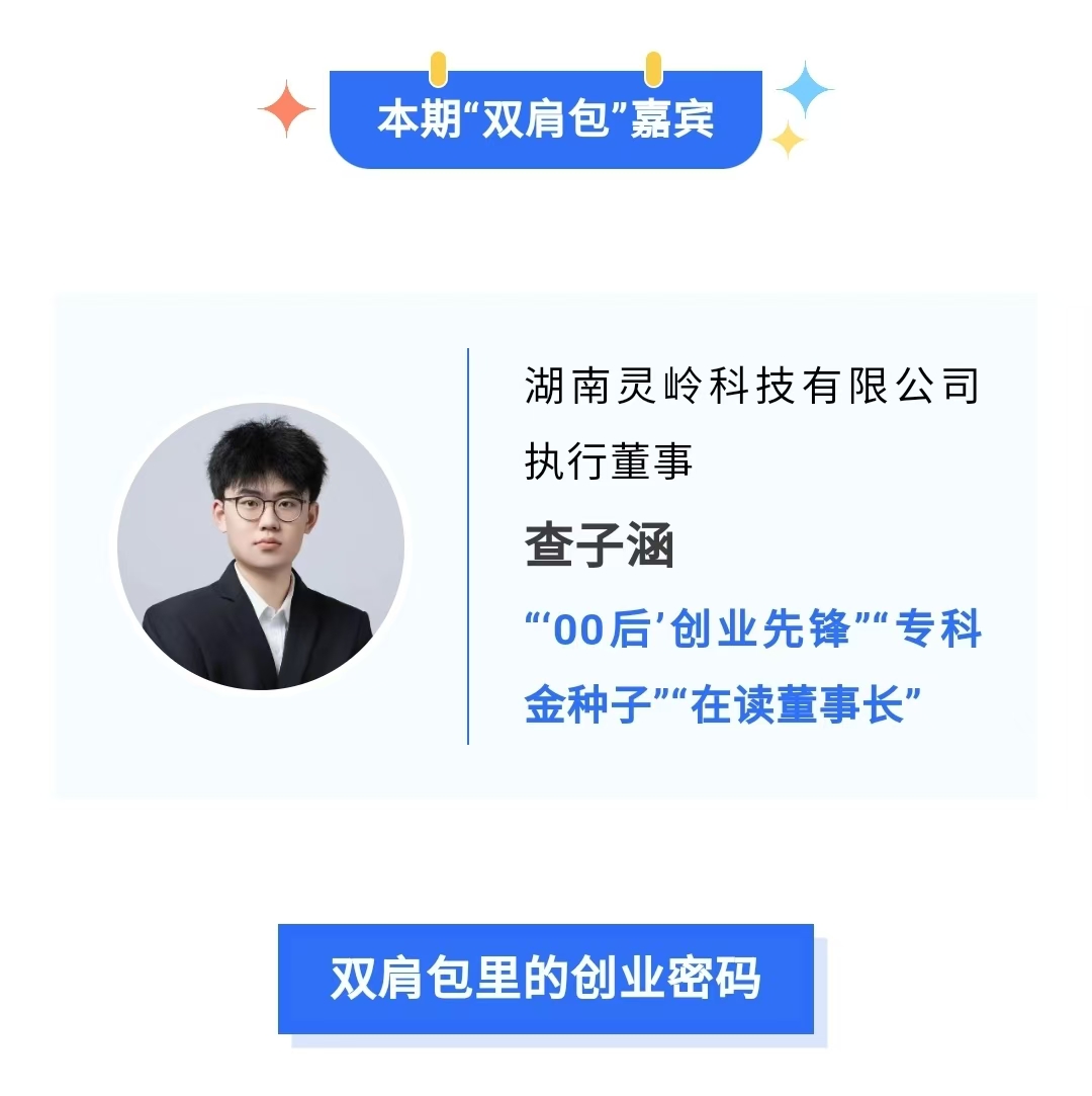 查子涵口中的热爱,指向的是他的双重身份——21岁的他,既是湖南高速铁路职业技术学院的在校学生,也是初创企业湖南灵岭科技有限公司的执行董事。