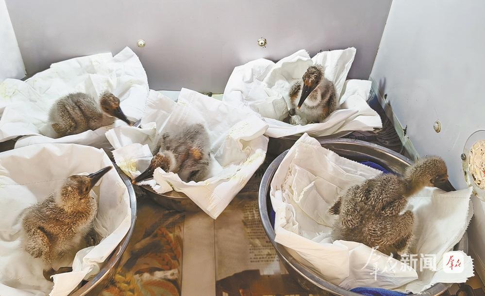 图为保温箱里的5只朱鹮宝宝。 受访单位供图