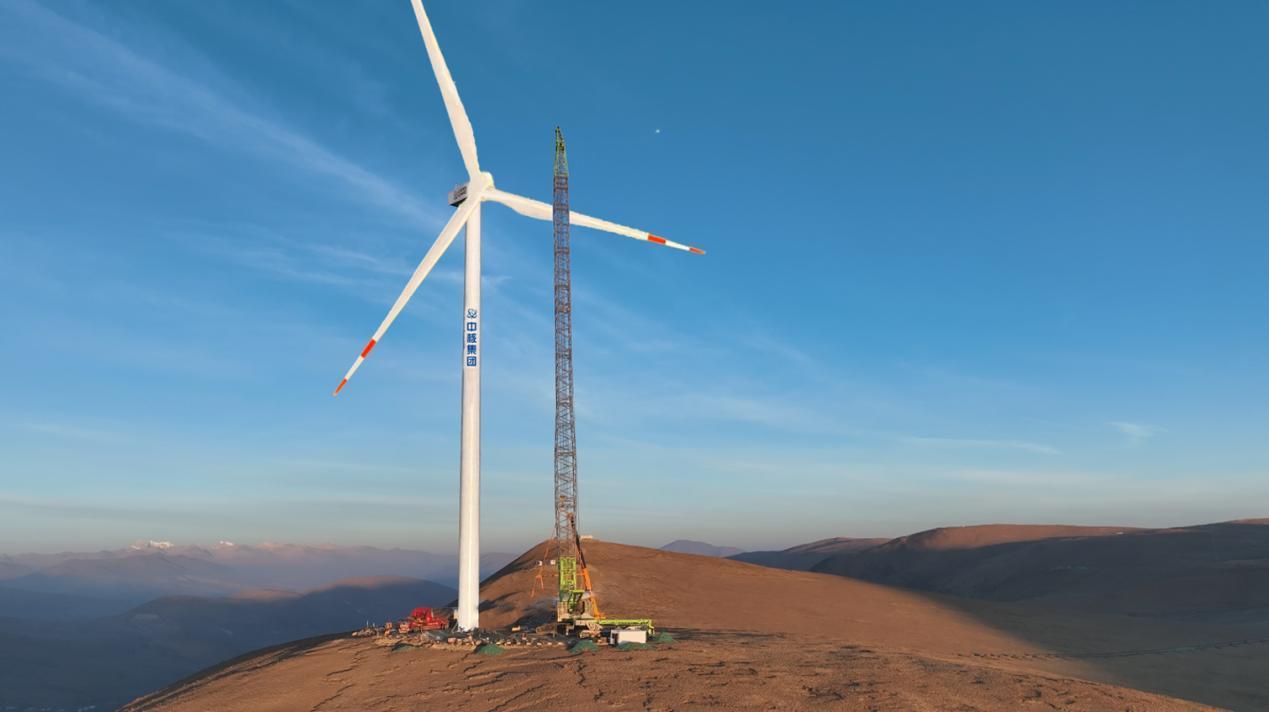 在西藏日喀则市萨迦县中核萨迦30万千瓦风光储一体化场区,蓝天如洗。白色风机矗立,叶片呼呼转动;脚下草地黄绿起伏,远处山峦明暗交错,云朵翻涌。苍穹下,新能源的热血正撞进眼底。中核(西藏)能源发展有限公司总经理 杜长春介绍,该项目是西藏自治区重点新能源建设项目,也是目前全球超高海拔地区单体容量最大的风电项目。