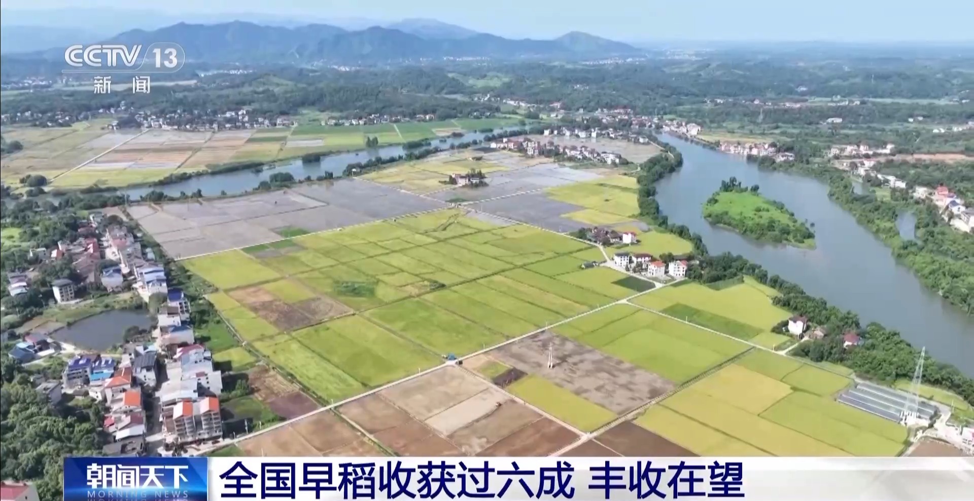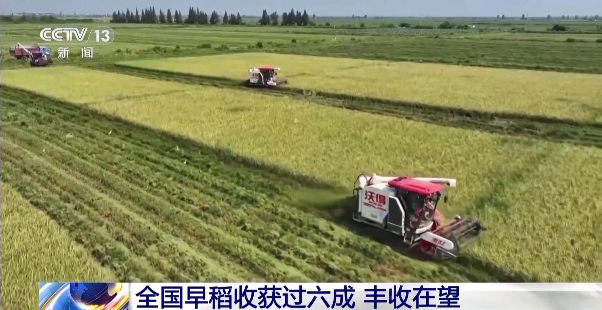 目前,全国早稻收获进入高峰期,已过六成,进度快于上年,丰收在望。