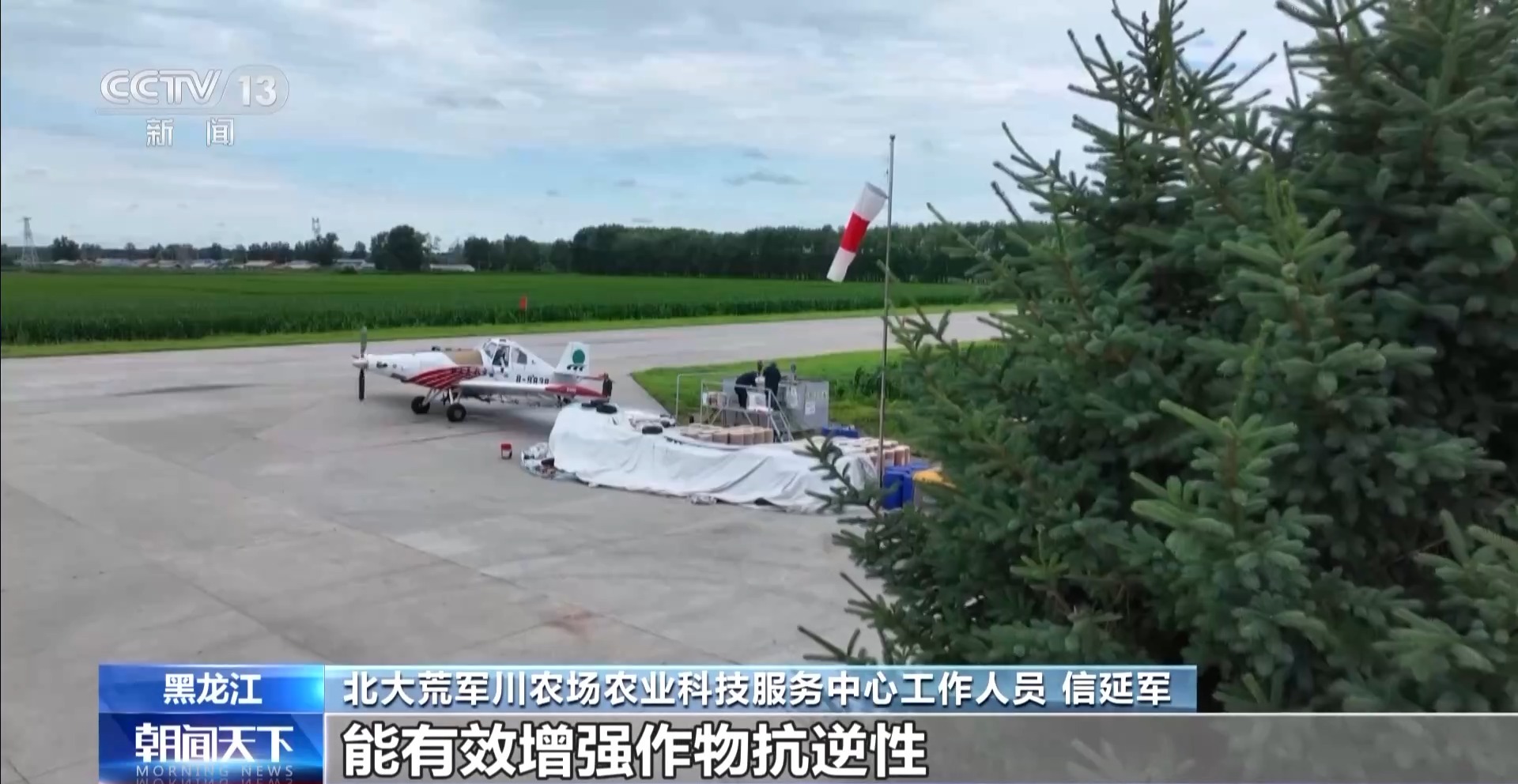 北大荒军川农场农业科技服务中心工作人员 信延军:结合作物生长需求,在药液中添加了叶面肥,能有效增强作物抗逆性,促进灌浆结实,为秋粮丰收打牢基础。