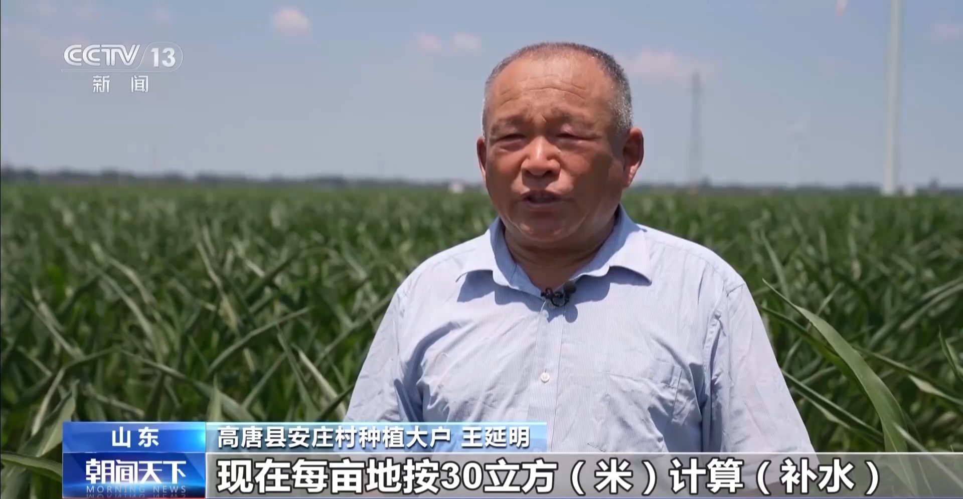 山东高唐县安庄村种植大户 王延明:以前浇地得7到8天,现在每亩地按30方计算补水,有3到4天就能全部浇完。