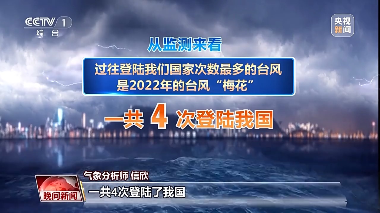 从监测来看,过往登陆我国次数最多的台风是2022年的台风“梅花”,先后登陆了浙江舟山、上海奉贤、山东青岛,还有辽宁大连。