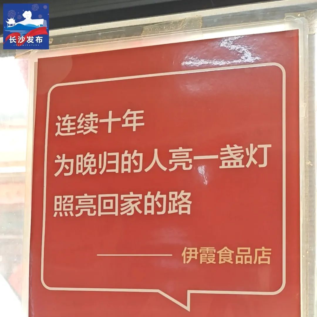 小店墙上,贴着一张小海报:“连续十年,为晚归的人亮一盏灯,照亮回家的路。”