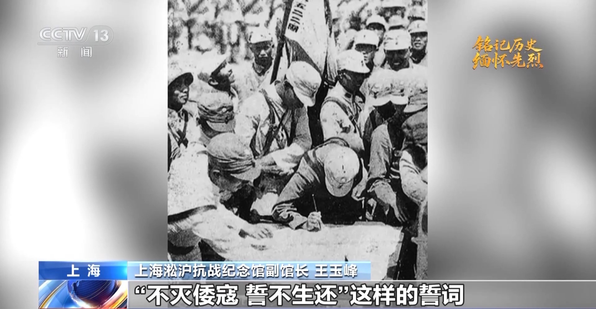 上海淞沪抗战纪念馆副馆长 王玉峰:日军为什么要占领庙行,因为占领庙行既可以切断第5军和第19路军的联系,占领吴淞口,吴淞是上海的咽喉门户,也是拱卫南京的重要屏障,一旦吴淞失守,日军就可凭借海军舰队,逆江而上,直逼南京,危及当时的国民政府。第5军全体官兵,就写下了“不灭倭寇、誓不生还”这样的誓词。