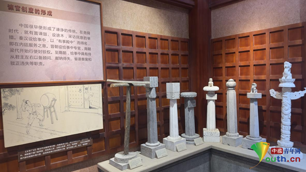 察院展厅中各个时期的“谤木”。中青网记者田昕禾 摄