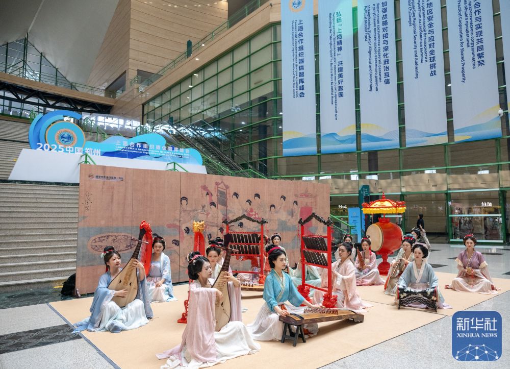 ↑ 这是在上海合作组织媒体智库峰会会场进行的《合乐图》民族乐器复刻展演(7月24日摄)。新华社记者 胡竞文 摄