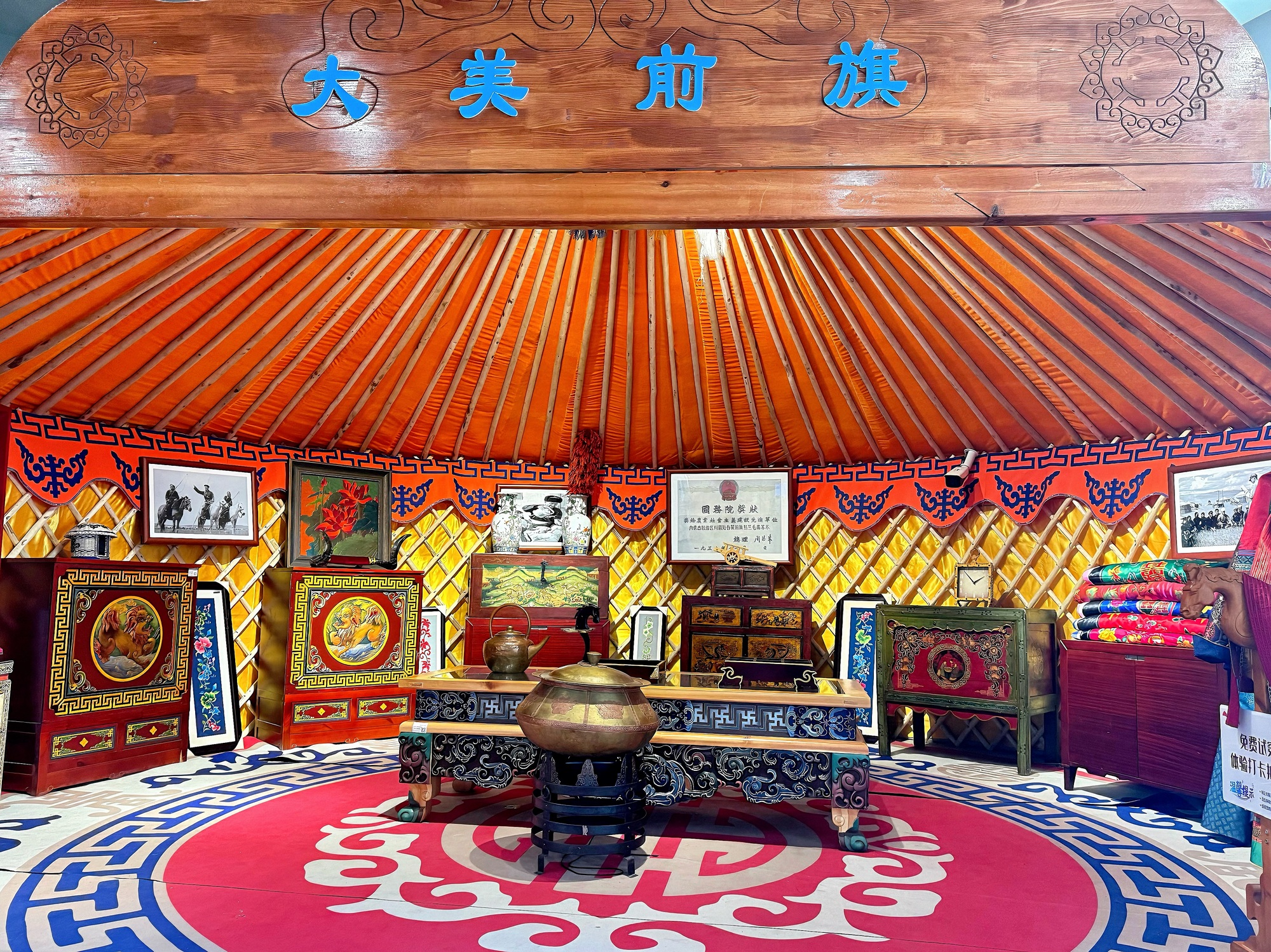 除了旺盛与闫海杰的展区,兴安领创展示体验中心还还原了兴安盟六个旗县市特色建筑场景,展示销售全盟的非遗、文创展品和特色手工艺品等。