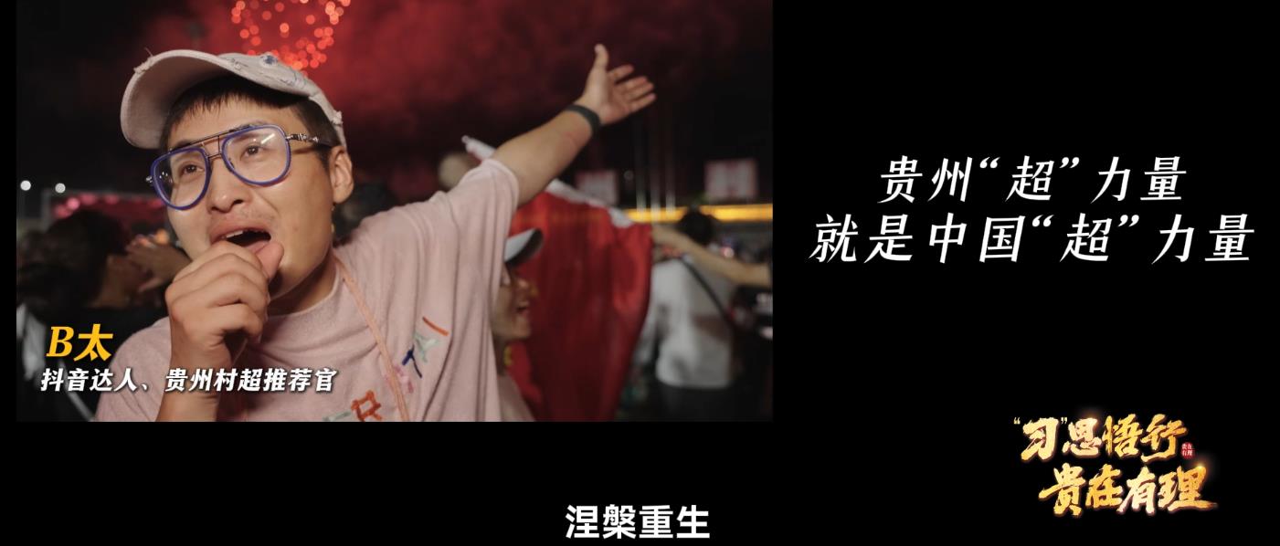 “村超”涅槃重生,见证了新时代的贵州“超”力量。这种力量的本质就是习近平新时代中国特色社会主义思想。村超从草根足球到文化IP,从抗洪救灾到快速重建复赛,每一步都印证了中国共产党“以人民为中心”的发展思想。