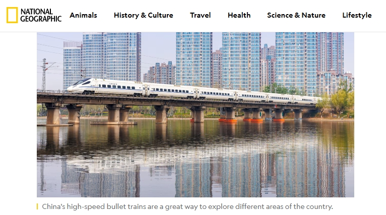 近日,美国《国家地理》杂志网站以《7趟高铁穿越中国,从长城到香格里拉》为题进行了深入报道。在一个晴朗的早晨,记者体验了乘坐G87次高铁从北京前往成都的旅程。这趟全程近1200英里(接近纽约到堪萨斯城的距离)的行程,仅需7.5小时。透过车窗,建筑物飞速后退,列车悄然加速,一路跨过黄河,越过西安古城,驶入四川群山之中。