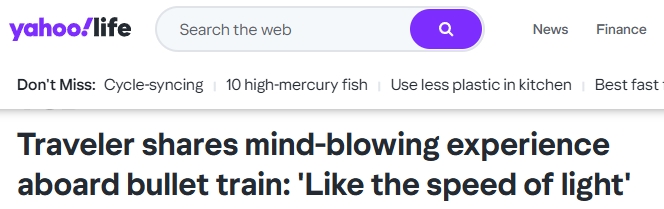 另据美国雅虎新闻报道,博主哈瓦·马加吉记录了来到中国的旅行经历,表示自己对高铁有了新的认识。她选择从上海乘坐高铁前往北京,两地相距700英里,乘坐高铁通常需要4到6个小时。由于是第一次乘坐高铁,马加吉对高铁的运行速度并无概念。“直到经过一辆静止的列车我才意识到高铁移动得有多快。”她惊呼,“你们知道吗?我们就像以光速呼啸而过。”