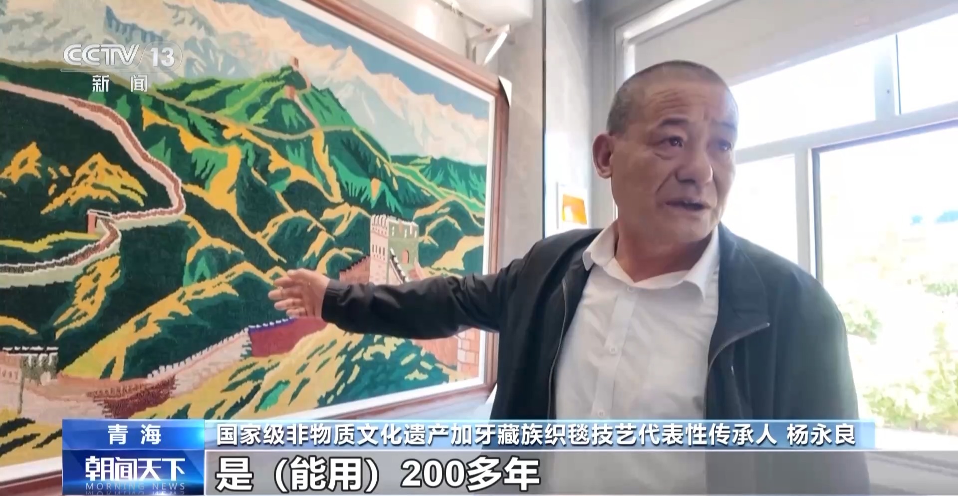 青海藏毯有着3000多年的历史,以加牙藏毯最为有名,从挑选、清洗羊毛到纺线、植物染色,再到上机编织、修剪,17道工序全部纯手工完成。在西宁市湟中区的加牙村,记者见到了62岁的杨永良,他是这项国家级非物质文化遗产的代表性传承人。