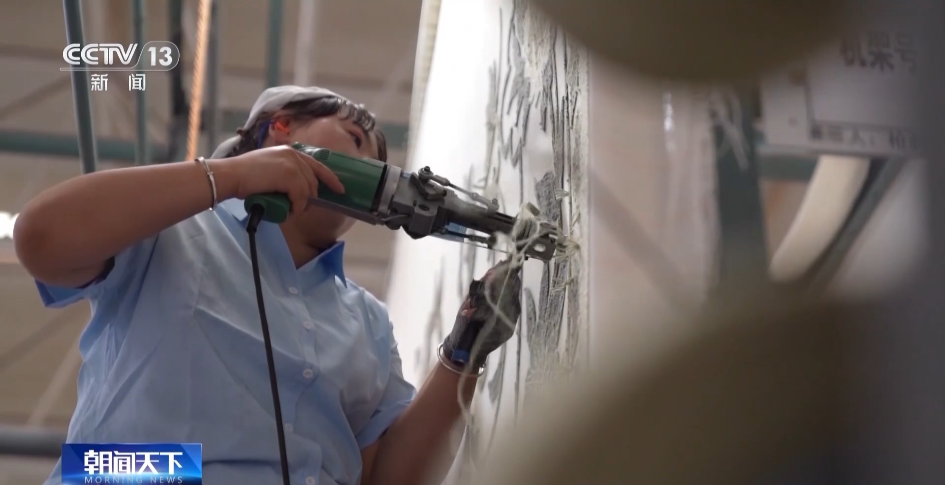 圣源地毯集团有限公司工人 孙明全:我们枪刺地毯是中高端产品,主要是在高级酒店用,技术含量比较高。我们想挑战自己的技术技艺,把亲手制作的地毯都发到世界各地。