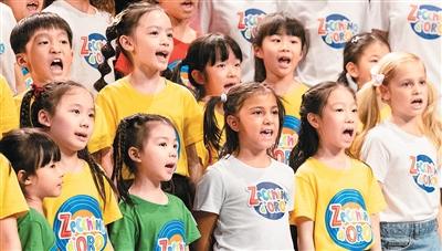近日,中国上海的绣球花小合唱团与意大利安东尼亚诺小合唱团在博洛尼亚共同演唱歌曲。新华社记者 李 京摄