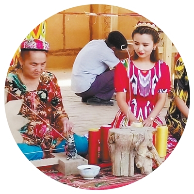 当地群众在制作艾德莱斯绸。图为鄯善县委宣传部提供