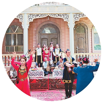其中的吐鲁番木卡姆节奏欢快、内容丰富,唱词多随民歌、诗歌而来,是多年来人们对生活经验、文学艺术等的积累。“吐鲁番木卡姆无鼓不歌、无舞不乐的艺术特色是古代高昌及高昌回鹘汗国的音乐遗风,而鲁克沁镇正是吐鲁番木卡姆的重要发源地。”依力·木合买提介绍。