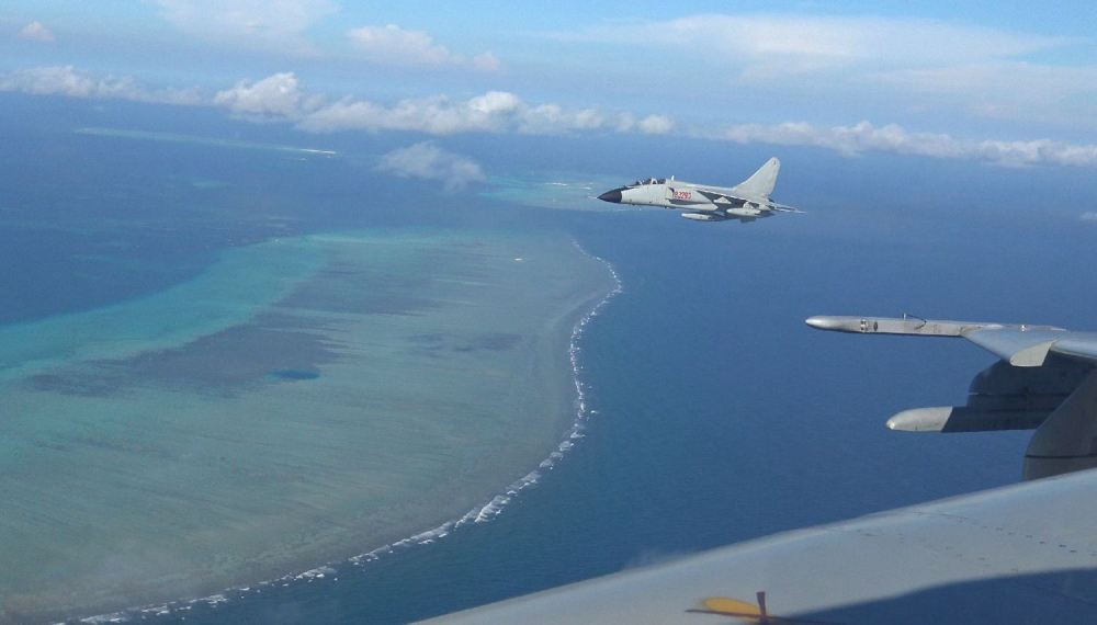 南海舰队航空兵某飞行团组织“飞豹”对我南海岛礁进行巡航(2017年3月19日摄)。新华社发(庞龙勋摄)