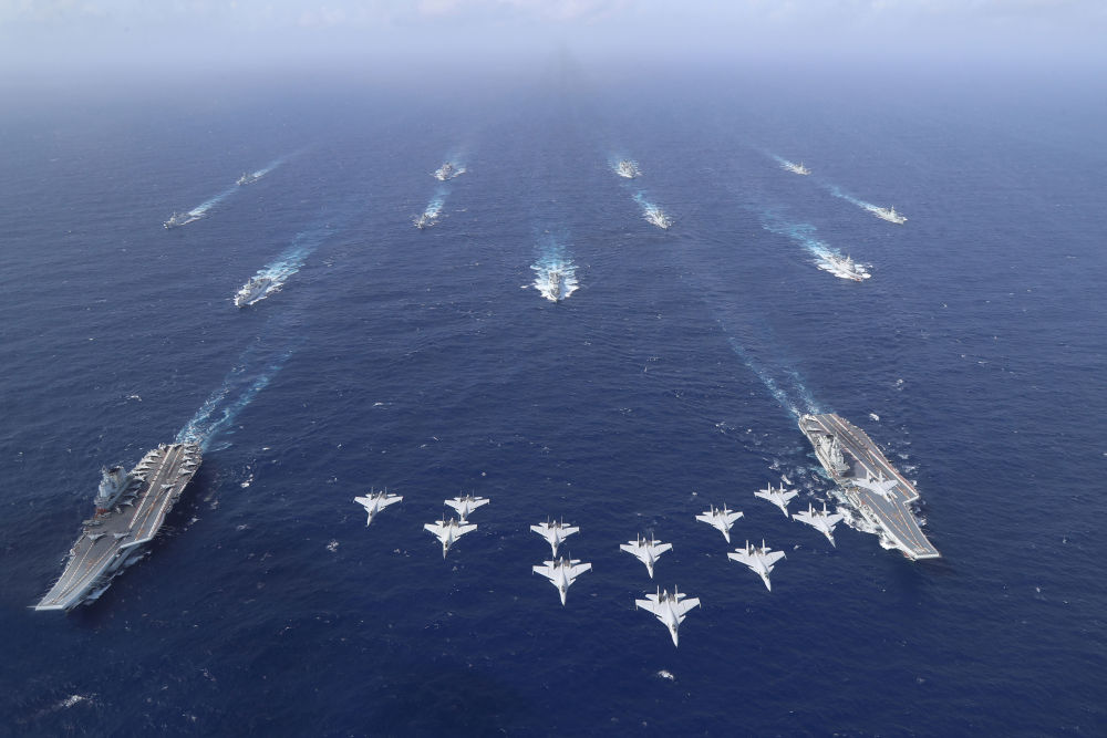2024年10月下旬,海军辽宁舰编队开展远海实战化训练。其间,辽宁舰、山东舰编队首次开展双航母编队演练。新华社发(陈梦曦摄)