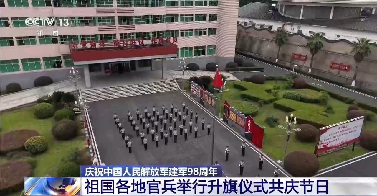 清晨,随着激昂的《义勇军进行曲》,鲜艳的五星红旗在空军某部营区冉冉升起,官兵们面对国旗庄严敬礼,表达对祖国的无限忠诚。升旗仪式后,他们还通过重温入伍誓词、讲述红色故事、观看红色电影等活动,激励官兵勿忘历史,奋斗强军。空军某部 陶政权:作为守卫祖国领空的一线部队,我们更应牢记军人职责使命,练就过硬本领,时刻绷紧战备之弦,在战位为祖国和人民交上一份满意答卷。正在黄海某海域执行任务的海军南昌舰举行升旗仪式,他们将“第一枪、第一舰、第一人”的红色基因融入血脉,激励官兵在新时代深蓝航程中续写荣光。今年是南昌舰下水8周年,南昌舰随航母编队加快提升体系作战能力,先后圆满完成中外联演、航母编队实战化部署、远海战巡等重大任务。在海拔4500米雪域高原,正在驻训的第77集团军某旅利用无人机举行升国旗仪式,官兵们在战位上迎接第98个建军节的到来。在第82集团军某旅营区,官兵们通过庄重的升国旗仪式,激发官兵的荣誉感、使命感。第82集团军某旅 牛申阁:在建军九十八周年之际,我们举行庄严的升旗仪式,就是要从光辉历史中汲取奋进力量,在仪式中铸牢忠诚之魂,引导官兵时刻保持警惕,锤炼过硬本领,为实现强军目标,贡献全部力量。与此同时,武警后勤学院、武警湘潭支队等也组织庄严的升旗仪式。官兵们用忠诚铸就军魂,肩负起保家卫国的重任和使命,奋进新征程。武警后勤学院 邹丹峰:这次升旗仪式不仅是对建军节的庆祝,更是一次精神的洗礼,我会把这份感动和责任融入到日常工作中,站好每一班哨,守护好这片为战育人的净土。 来源:央视新闻 相关热词搜索: