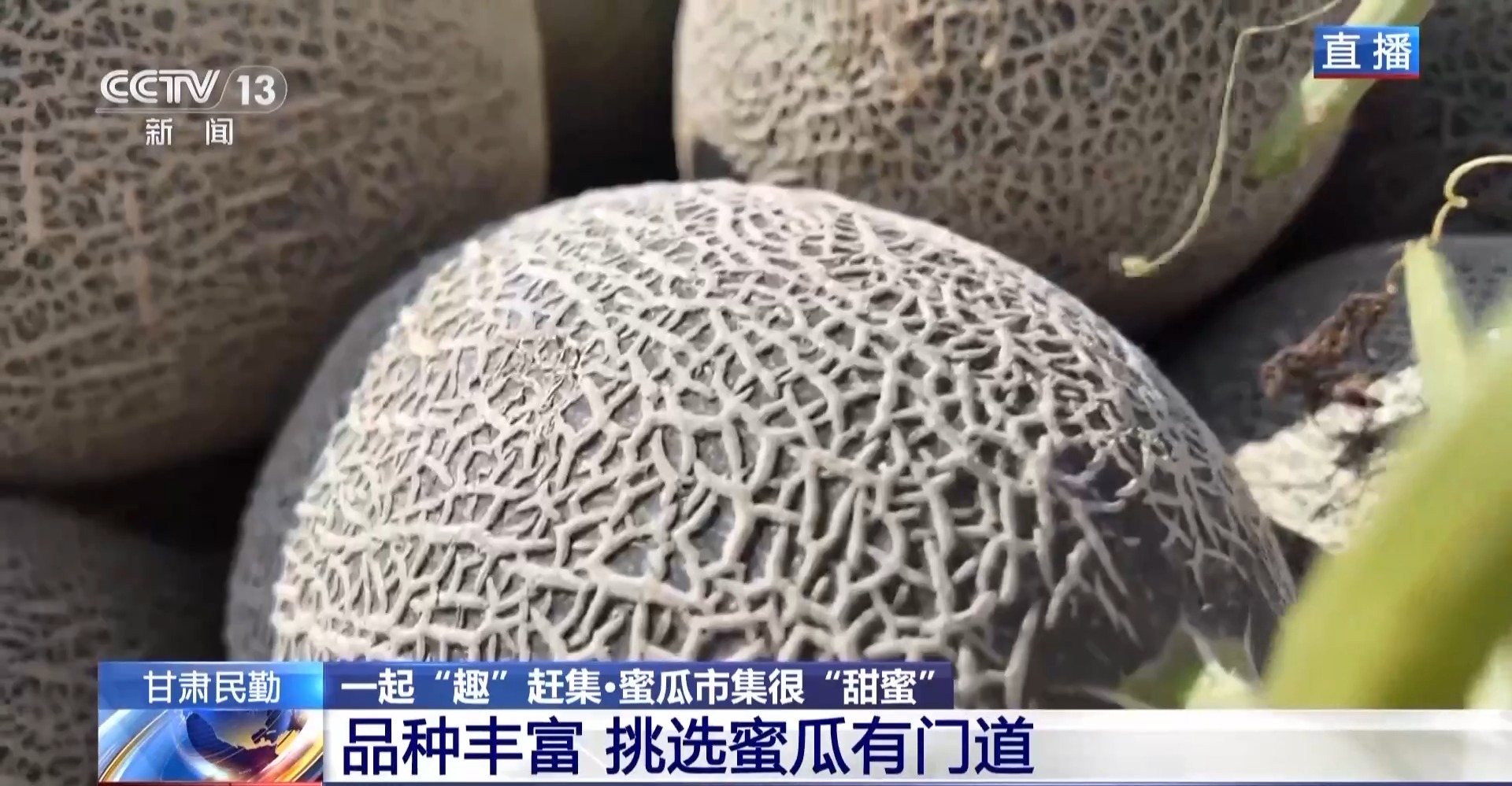 总台记者 马丽:借助蜜瓜产业,当地也衍生出了专业验瓜人、物流工人、网络主播等多种职业。每年蜜瓜成熟季,外地客商来到民勤,也带动了本地的餐饮、住宿和其他消费。今年,民勤全县的蜜瓜种植面积达16万余亩,预计总产量51万吨。可以说,蜜瓜产业现在已成为本地百姓增收致富的一项支柱产业,“甜蜜”经济也让大家的日子越过越好。