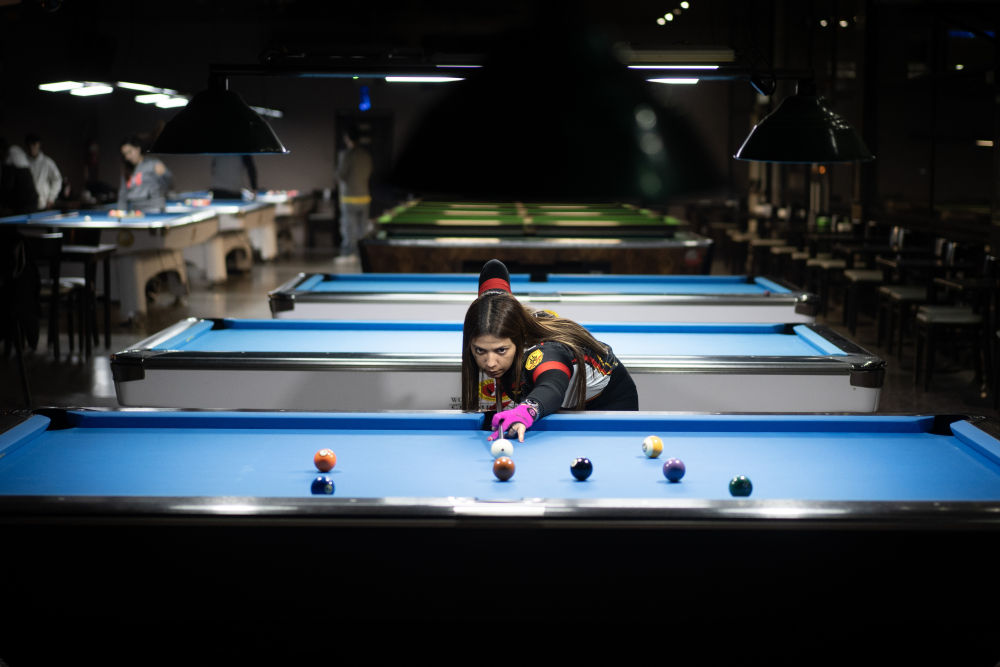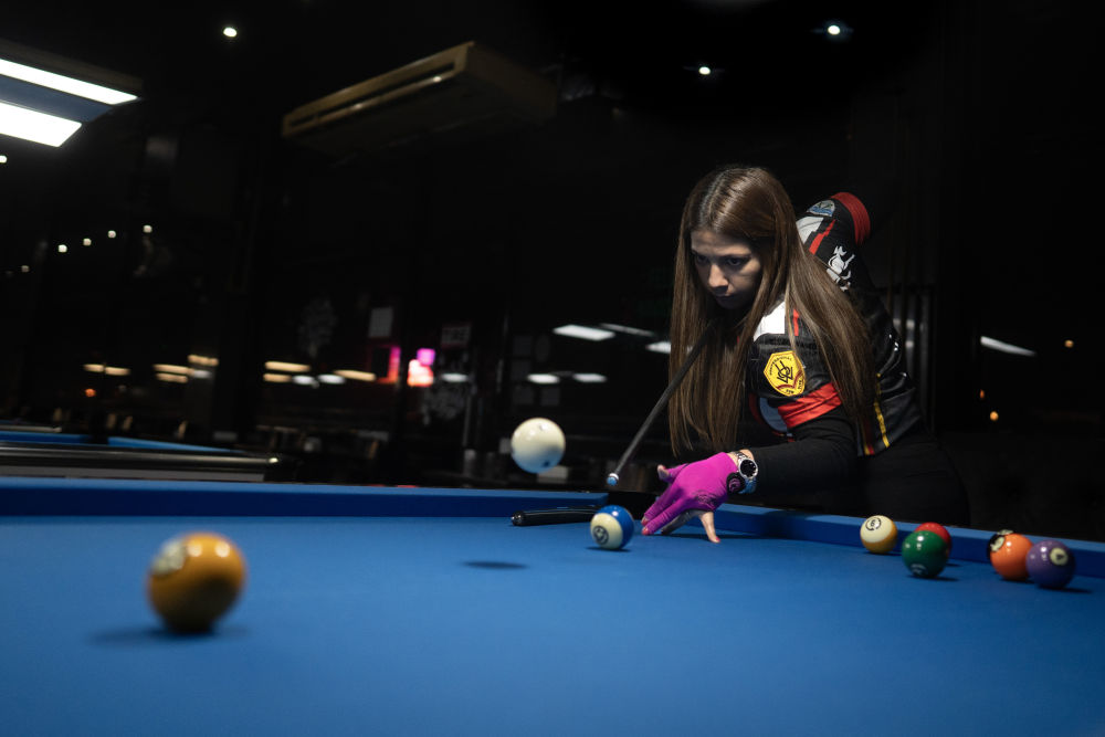 7月30日,阿根廷台球运动员索莱达·阿亚拉在训练中。新华社发(马丁·萨巴拉摄)