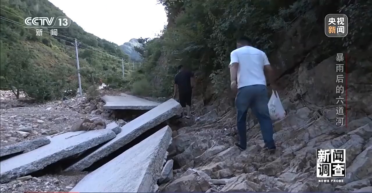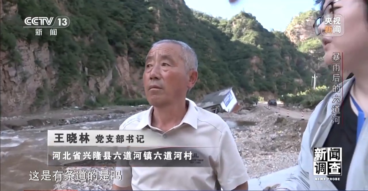记者:你们村正常进去应该是顺着这里有条路是吗?河北省兴隆县六道河镇六道河村党支部书记 王晓林:对,有条水泥路。记者:这条水泥路现在是冲垮到什么位置?王晓林:基本上全废了,里边还有两个生产组。记者:生产组距离我们有多远?王晓林:到后头应该有十二里地。