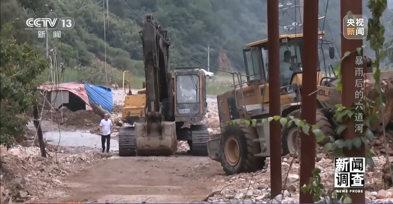 与此同时的五道河村,武警官兵也在驾驶挖掘机抢通道路,帮助村民清除自己无法清除的山石。