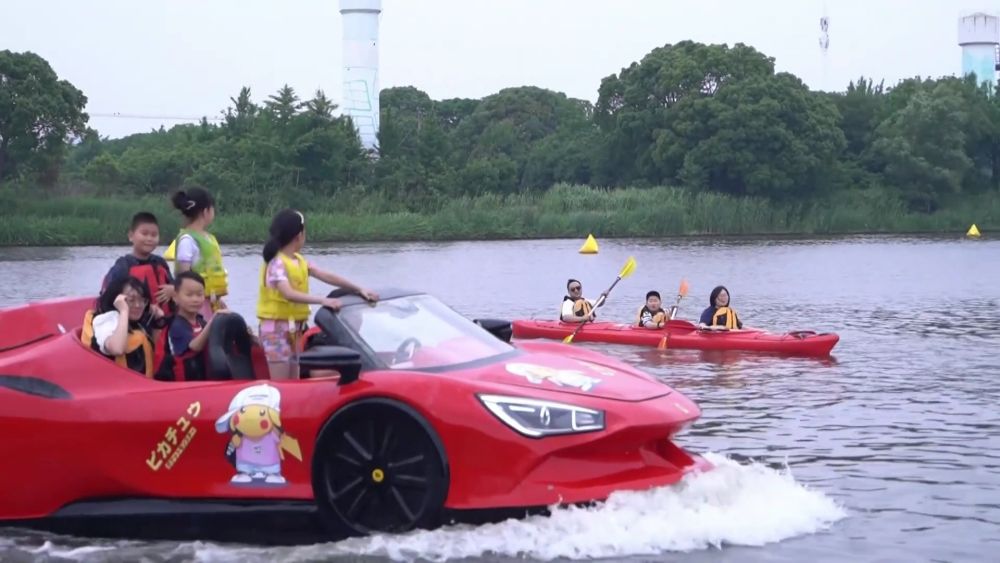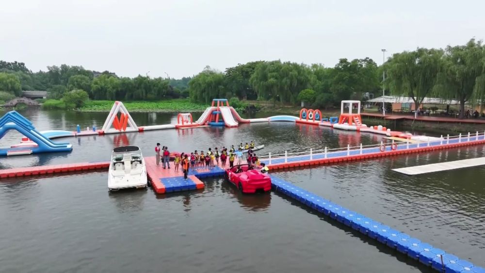 蝉鸣盛夏,丰富多彩的水上运动颇受青睐。在浙江长兴县,皮划艇、水上魔毯、水上冲关等各项水上运动竞技挑战项目吸引了众多游客。