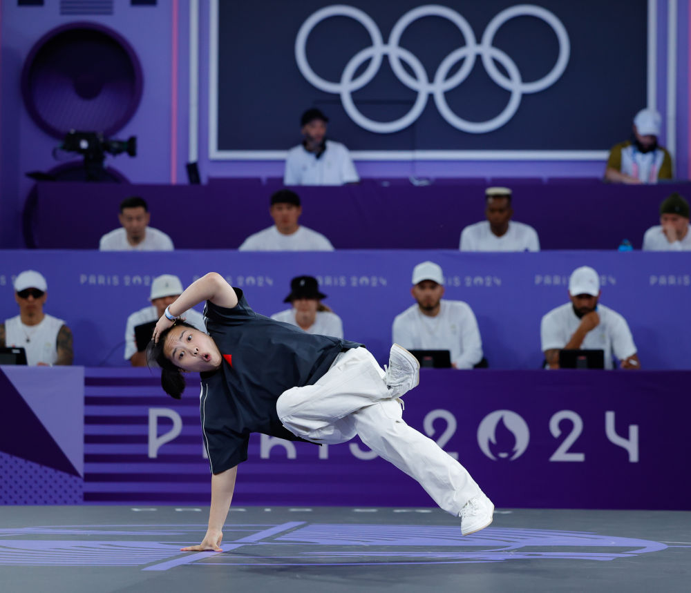 霹雳舞在2022年伯明翰世运会上首次成为正式比赛项目,2024年又登上了巴黎奥运会舞台,本届成都世运会霹雳舞也是正式比赛项目之一。图为巴黎奥运会上,中国选手刘清漪在霹雳舞比赛中。新华社记者 沈伯韩 摄