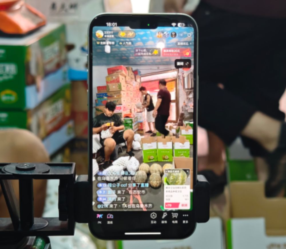 7月29日,新疆一家水果商户直播销售老汉瓜。新华社记者苟立锋 摄
