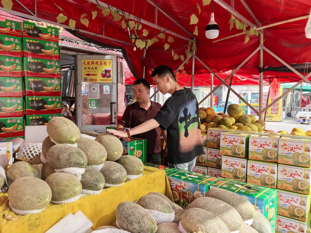 而如今,通过阿卜杜拉兄弟这样的直播间,新疆老汉瓜正搭乘“飞的”奔赴全国各个城市。兄弟俩的水果店里,老汉瓜今夏上市以来生意持续火爆,日均订单150多单,单品日销售额接近两万元。